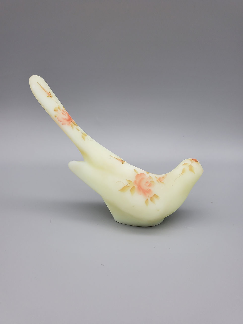 Fenton Glass Satin Custard Bird of Happiness Hand Painted